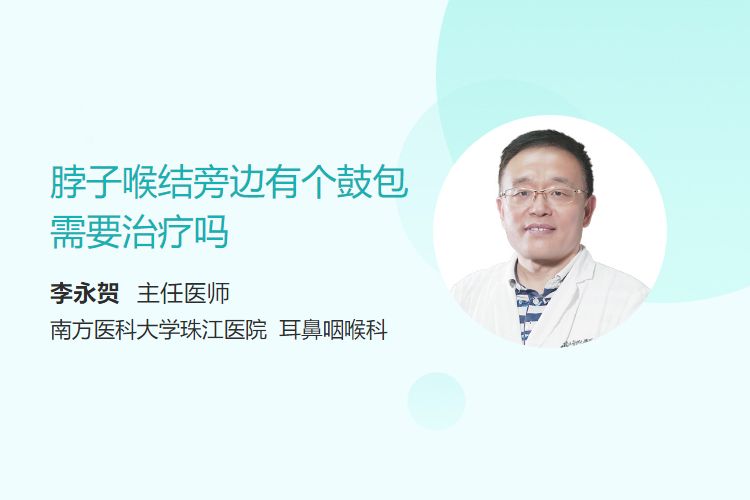 脖子喉结旁边的鼓包是否需要治疗,取决于其性质和症状。若为短期无痛性、可随吞咽移动的肿块,可能是生理性甲状腺组织或淋巴结反应性肿大,通常无需紧急治疗;若伴随疼痛、快速增大、长期不消退或影响吞咽、呼吸困难,需及时就医处理。