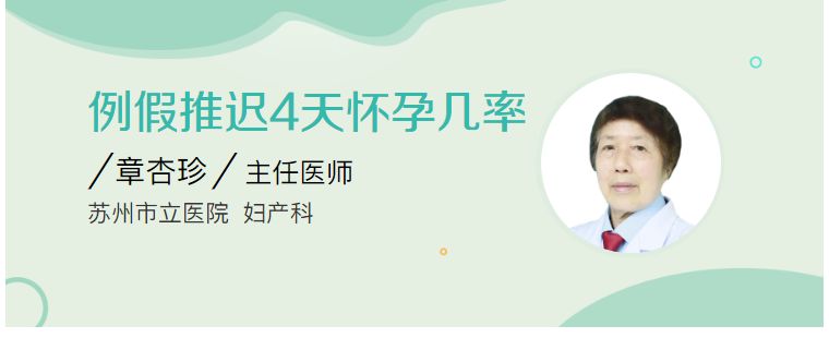 例假一般是指月经,月经推迟4天,怀孕的几率是不确定的,与平素月经周期的稳定性、近期性生活情况、个体差异等因素有关。