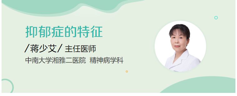 抑郁症主要特征包括情绪低落、失去兴趣、快感缺失、自责自罪、自杀观念或行为等。