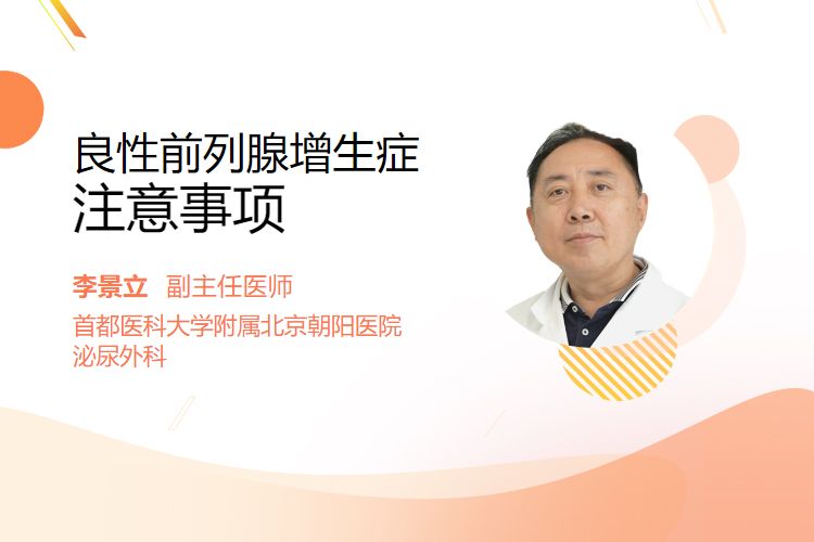 良性前列腺增生症患者需注意防寒保暖、避免久坐、慎用药物、及时排尿、戒烟限酒等。