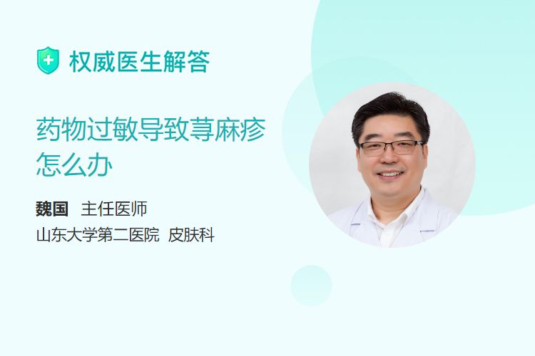 药物过敏导致荨麻疹应该使用抗组胺药物、局部外用药物、糖皮质激素等。