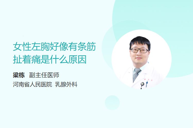 女性左胸好像有条筋扯着痛可能是乳房外伤、乳腺增生、乳腺炎、乳腺肿瘤等原因引起的。