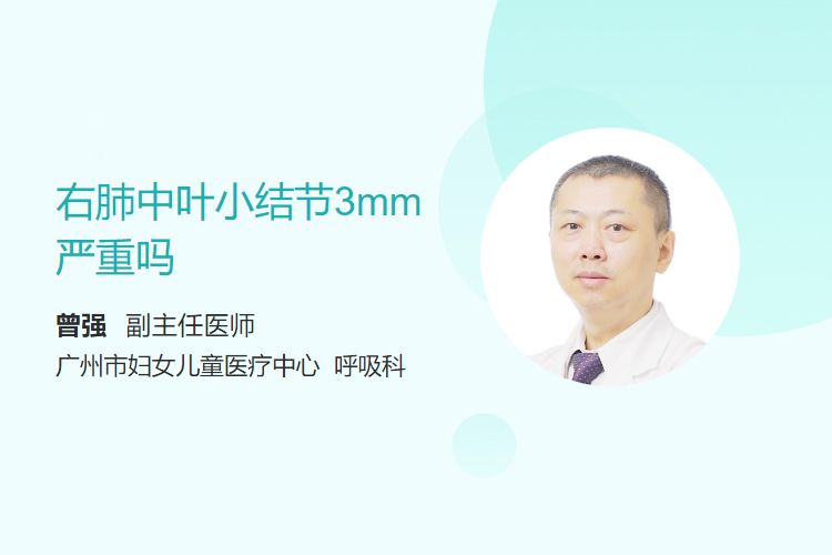 右肺中叶小结节3mm是否严重需根据结节大小、位置以及患者年龄和吸烟史、进一步检查等因素判断。