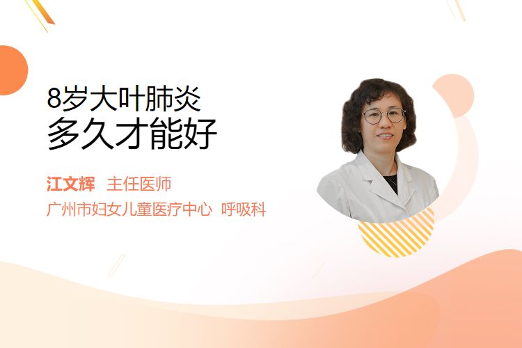 大叶性肺炎是由肺炎链球菌感染所引起的一种疾病,8岁孩子感染后,如果及时到小儿呼吸科就诊,完善血常规、CT等检查,明确疾病后遵医嘱进行积极治疗,通常发病后一周左右能痊愈。但具体痊愈时间与疾病严重程度、自身对药物的敏感性,以及身体恢复能力有一定关系,会存在一定的偏差。