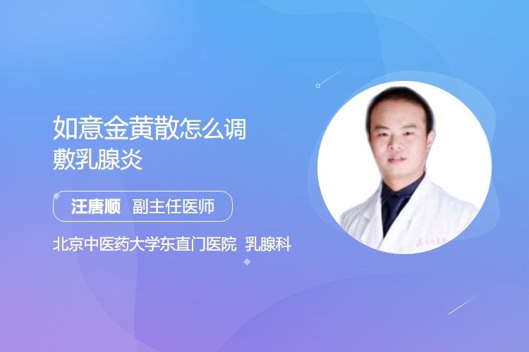 如意金黄散调敷乳腺炎的方法包括准备药物、调配药物、清洁皮肤、外敷药物、覆盖固定等步骤。