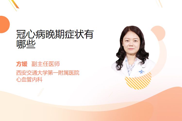 冠心病晚期的常见症状包括心力衰竭、心律失常、心绞痛、心肌梗死、猝死等。
