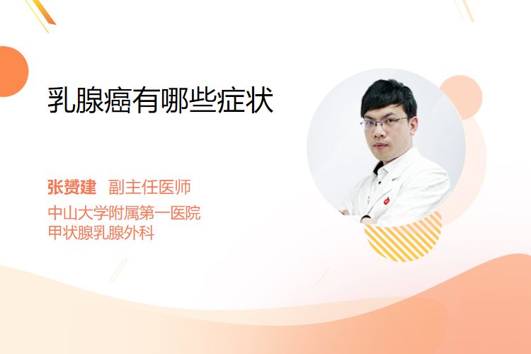 乳腺癌早期通常无明显症状,疾病进展后可出现乳房肿块,乳头溢液,皮肤改变,乳头、乳晕异常,腋窝淋巴结肿大等症状。