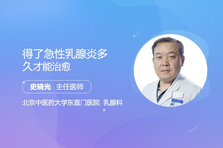 得了急性乳腺炎,治愈时间因人而异,一般在7天到1个月左右。