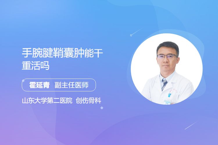 手腕腱鞘囊肿是发生于手腕部腱鞘内的囊性肿物,是由于手腕部过度活动、慢性劳损等原因,导致腱鞘内的滑液增多,形成囊性肿物。如果患者在手腕腱鞘囊肿未治愈的情况下干重活,可能会导致腱鞘囊肿破裂,从而加重病情,影响治疗效果。此外,如果手腕腱鞘囊肿较大,可能会压迫周围的神经、血管等组织,导致手部麻木、疼痛、无力等症状。如果患者在这种情况下干重活,可能会加重神经、血管的损伤,导致手部功能障碍。