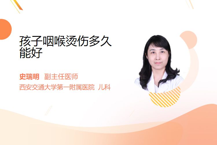 孩子咽喉烫伤后恢复的时间因人而异,主要取决于烫伤程度、治疗方法、孩子的健康状况、饮食管理、口腔卫生等。
